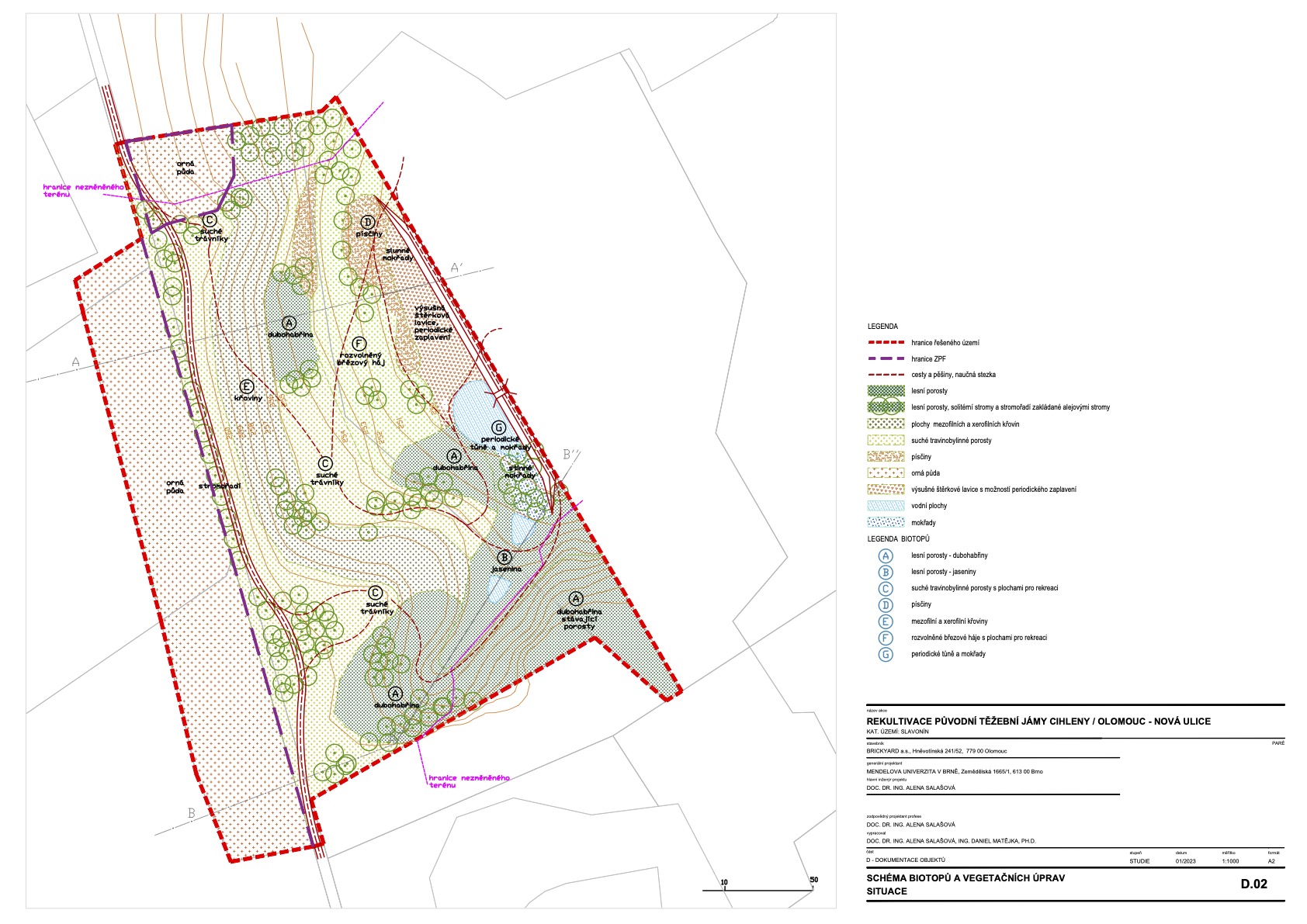 Pro návrh vlastní biologické rekultivace byl vybrán Ústav tvorby krajiny, Mendelova univerzita, Brno, kde pracují jedni z nejlepších odborníků na tuto problematiku v České republice.Výsledkem jejich činnosti je studie „Rekultivace původní těžební jámy cihelny Olomouc“, podle které dojde k vytvoření lokálních biotopů s periodickými tůněmi a mokřady, písčin, tzv. hadníků, broukovišť a dalších lokálních biotopů, které zajistí obnovení původní fauny v této lokalitě. Část lokality bude upravena do podoby vhodné pro hnízdění ptactva dle návrhu odborné ornitologické organizace. V rámci biologické rekultivace dojde taktéž k výsadbě dřevin v počtu cca 5600 sazenic stromů a keřů.